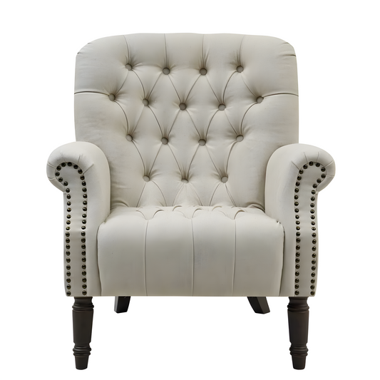 Maurice Natural Linen Buttoned Armchair With Studs.