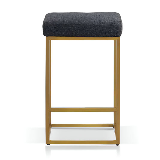 Dalton Black Boucle and Brushed Gold Frame Bar Stool, Backless
