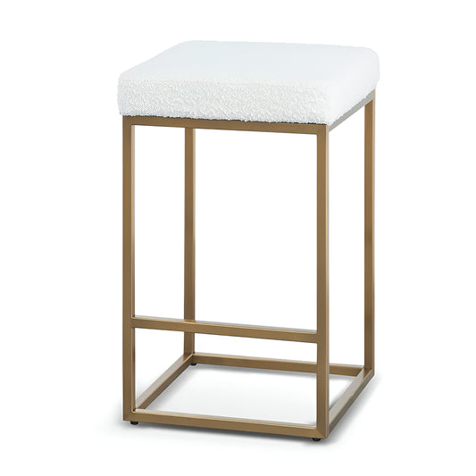 Dalton White Boucle and Brushed Gold Frame Bar Stool, Backless