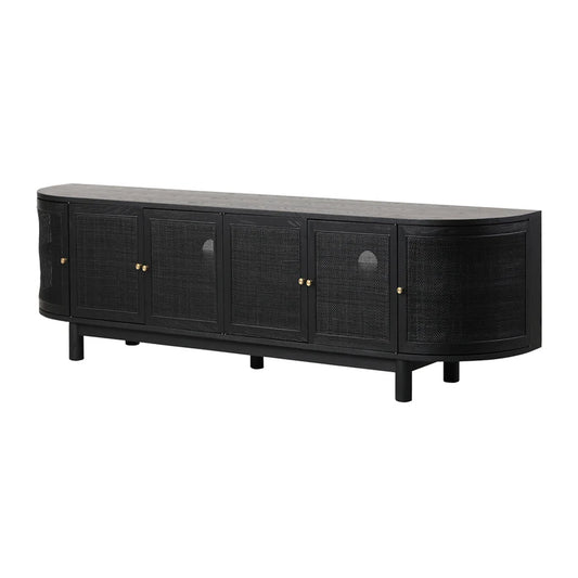 LAX Entertainment Unit Black Ash Wood & Rattan, 2.2m