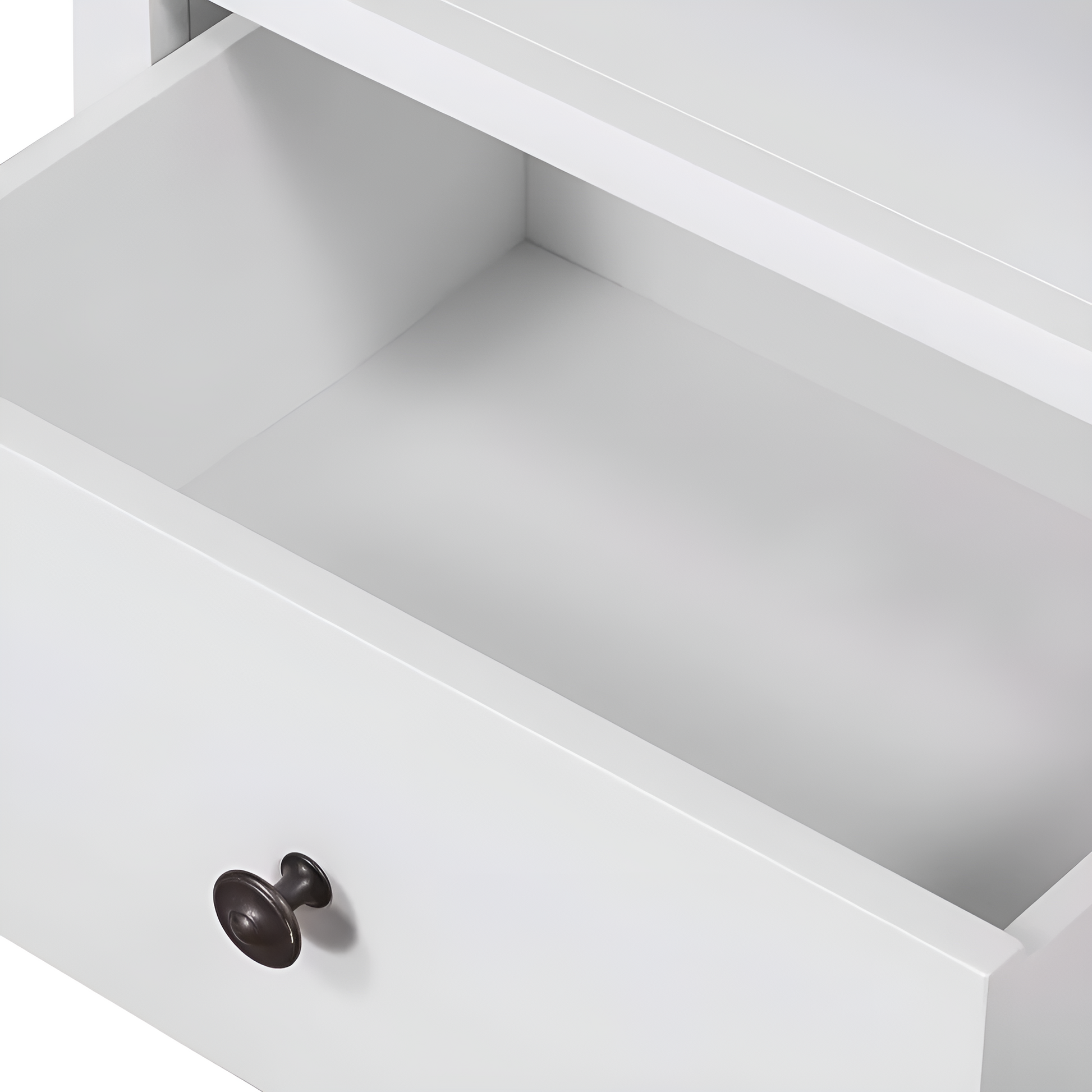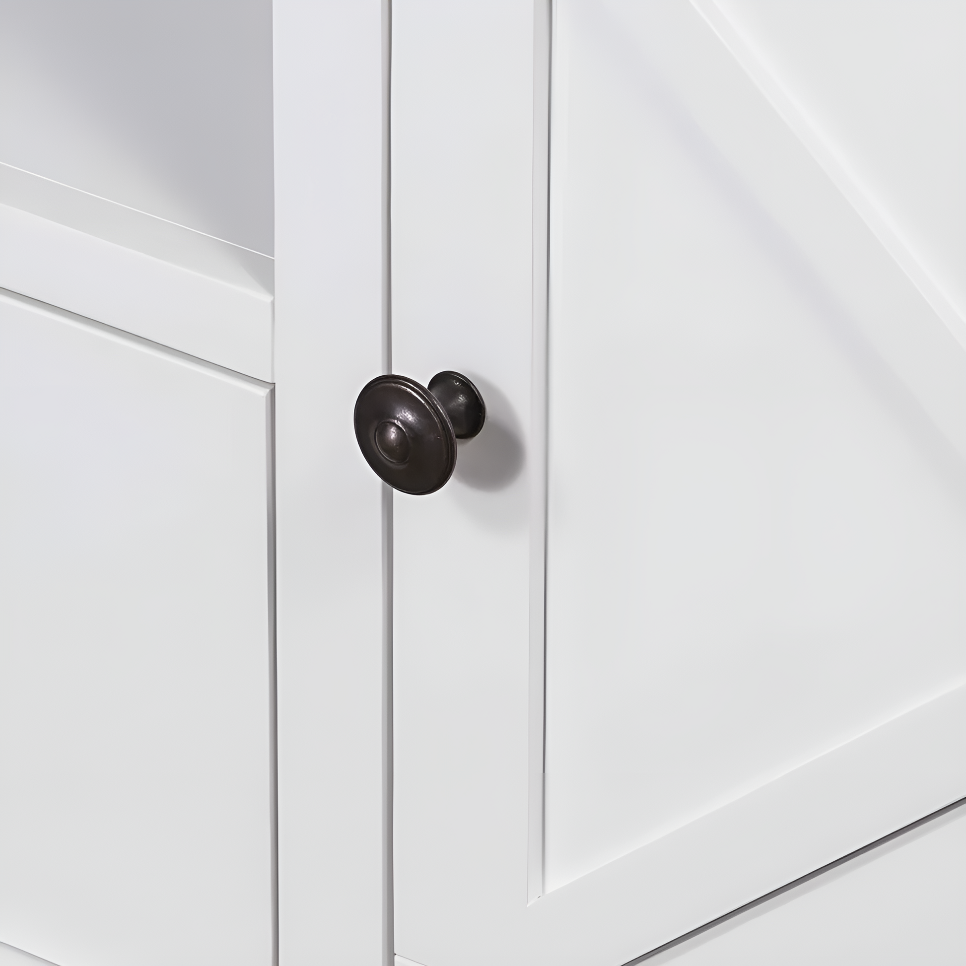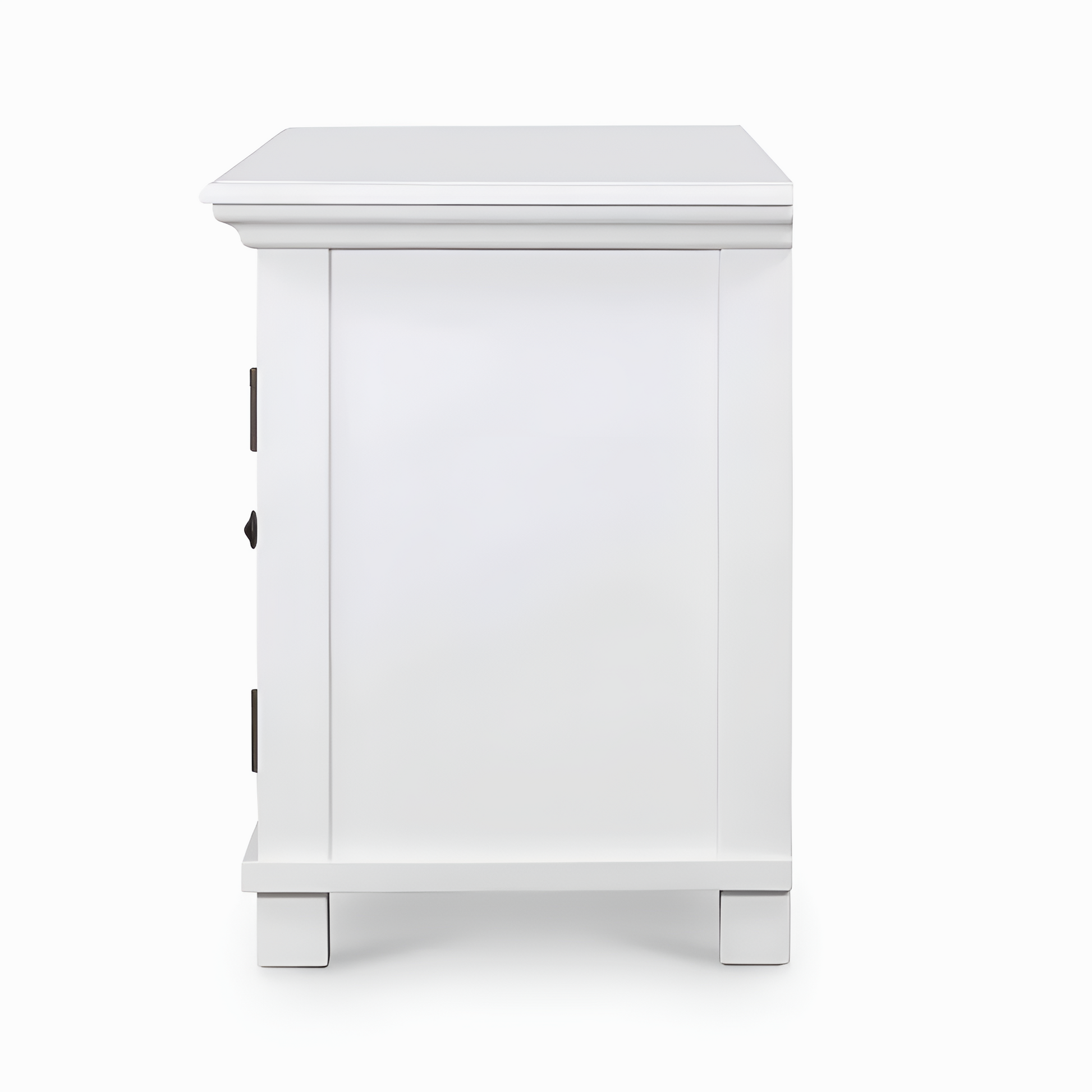Bring a touch of coastal elegance to your living space with this Hamptons-inspired entertainment unit. Crafted from a durable combination of MDF and solid acacia wood, this piece boasts a crisp white finish that perfectly complements its beachy aesthetic. The unit features two spacious cabinets with X-panel doors, offering ample storage for media equipment and accessories. A central open shelf provides easy access for devices, while the drawer below adds extra organization options. The clean lines, crown molding top, and slightly raised feet contribute to its classic coastal charm.
