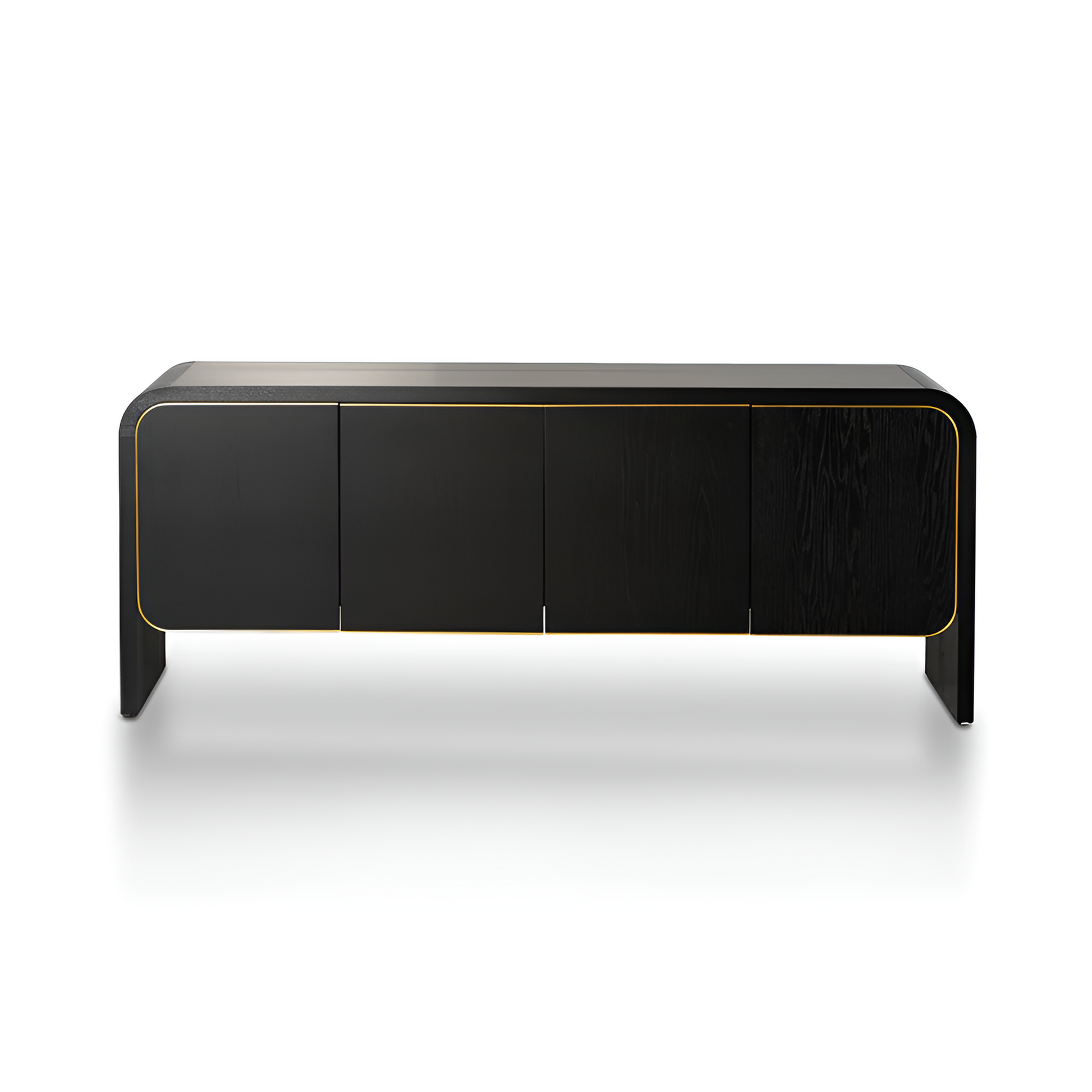 Indulge in sophistication with our Brooklyn Textured Espresso Black Buffet, a statement piece that elevates any dining or living area. Crafted with meticulous attention to detail, its luxurious textured black finish exudes chic and elegance, while brass lining on the doors adds a touch of opulence. This buffet seamlessly combines style with functionality, offering ample storage space for your dining essentials or cherished decor items. Whether entertaining guests or organizing your space, this exquisite piece brings a timeless allure to your home decor. Upgrade to the epitome of refined taste with our Brooklyn Buffet and make a lasting impression in any room.